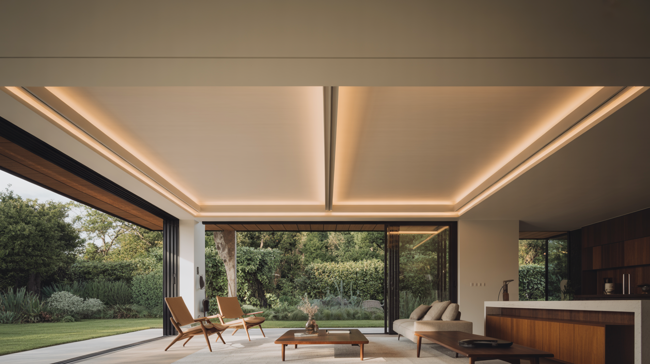 New-build residential and commercial projects where the blind must vanish completely when not in use. Suits modern architectural interiors, premium residences, and high-end hospitality where discreet, fully-integrated shading is part of the ceiling detail.